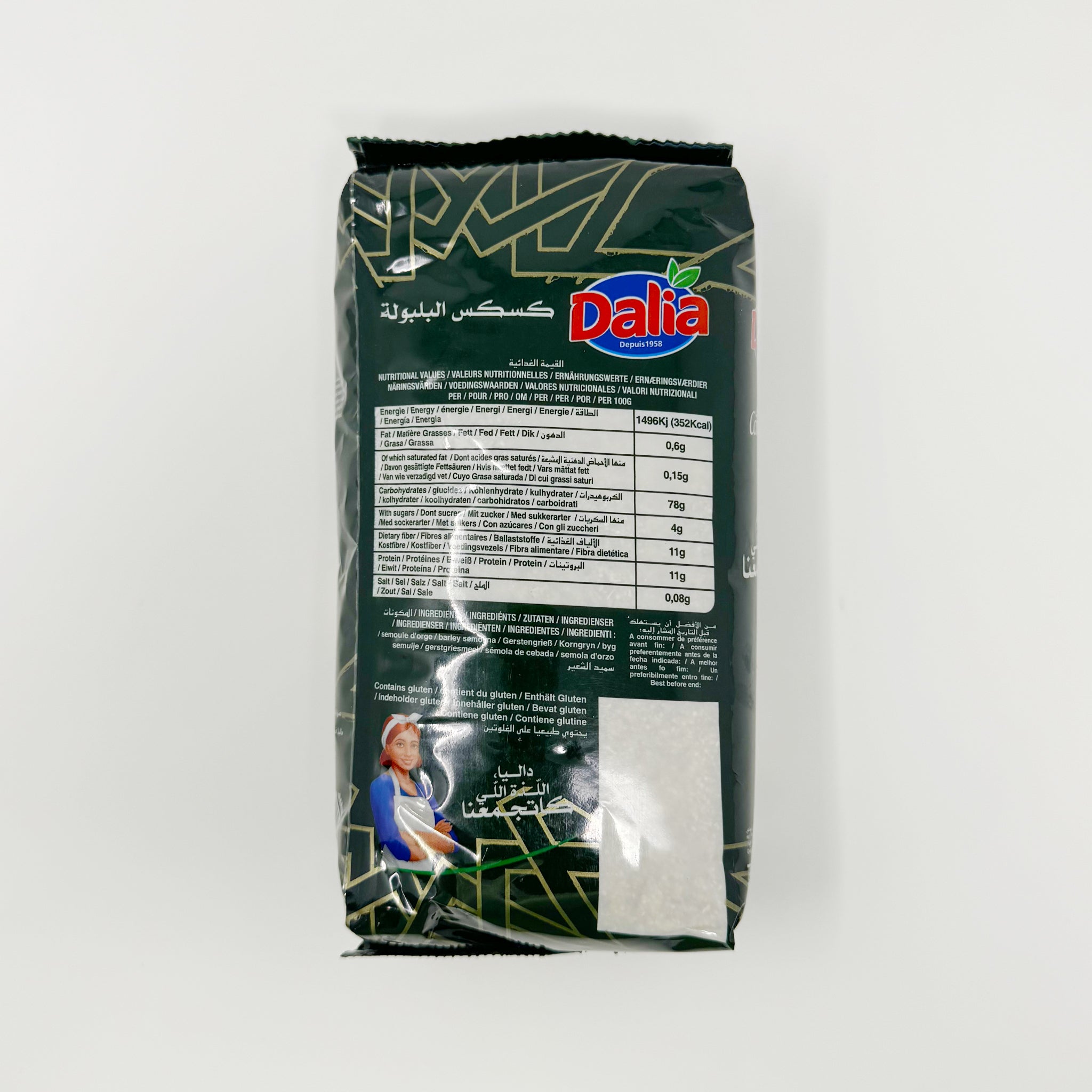 "Elevate your culinary journey with Dalia Couscous Balbola, now available in a generous 1kg package! This premium couscous is meticulously crafted for an authentic and delightful dining experience. Whether paired with savory dishes or used as a creative base, Dalia Couscous Balbola adds a touch of excellence to your kitchen. Order now and bring the richness of Balbola couscous to your table, creating memorable meals with ease."