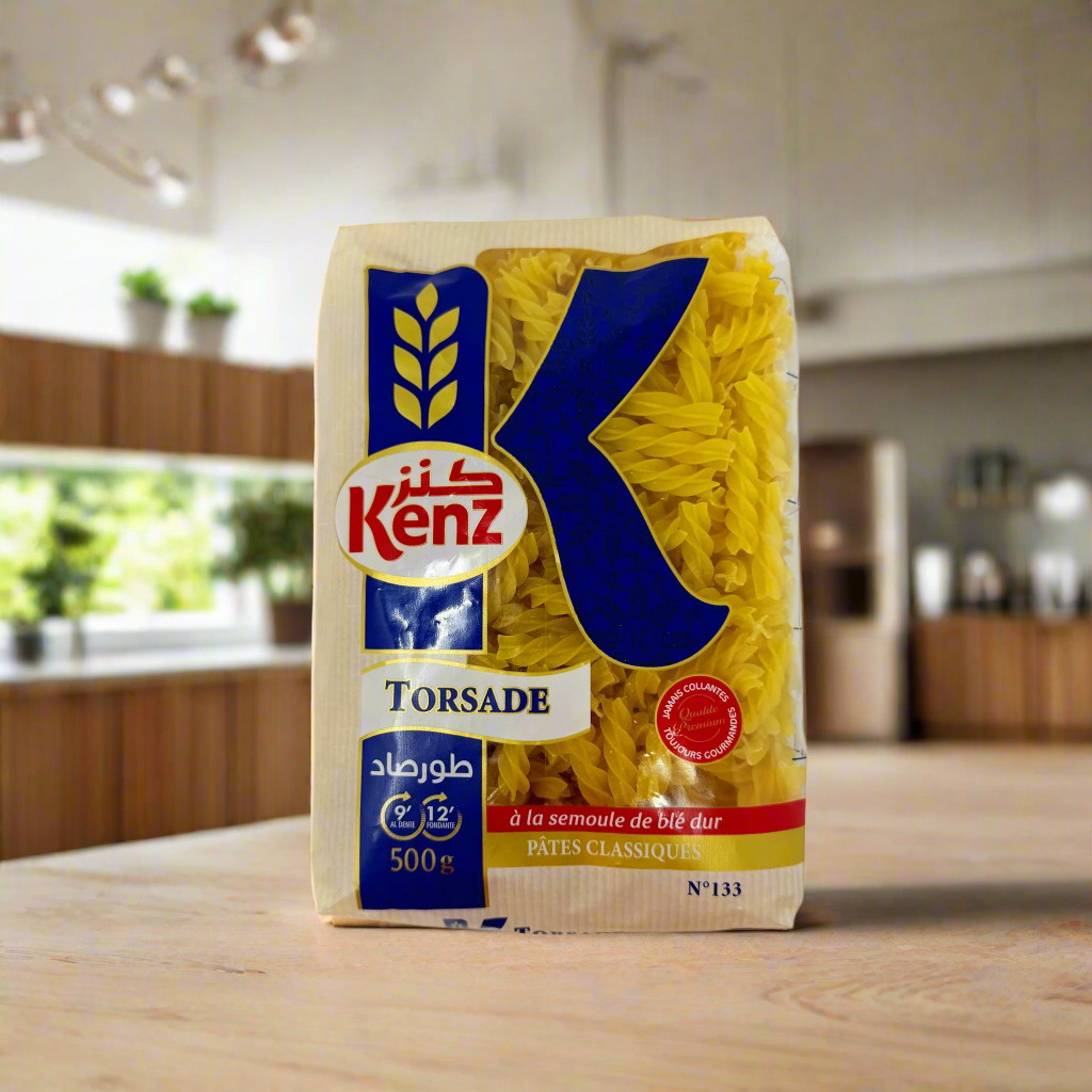 Introducing Kenz Torsade Pasta, 500g of beautifully twisted, versatile pasta perfect for a variety of dishes. Ideal for salads, baked dishes, or as a hearty side, its unique shape holds sauces and flavors beautifully. Elevate your meals with Kenz Torsade Pasta!