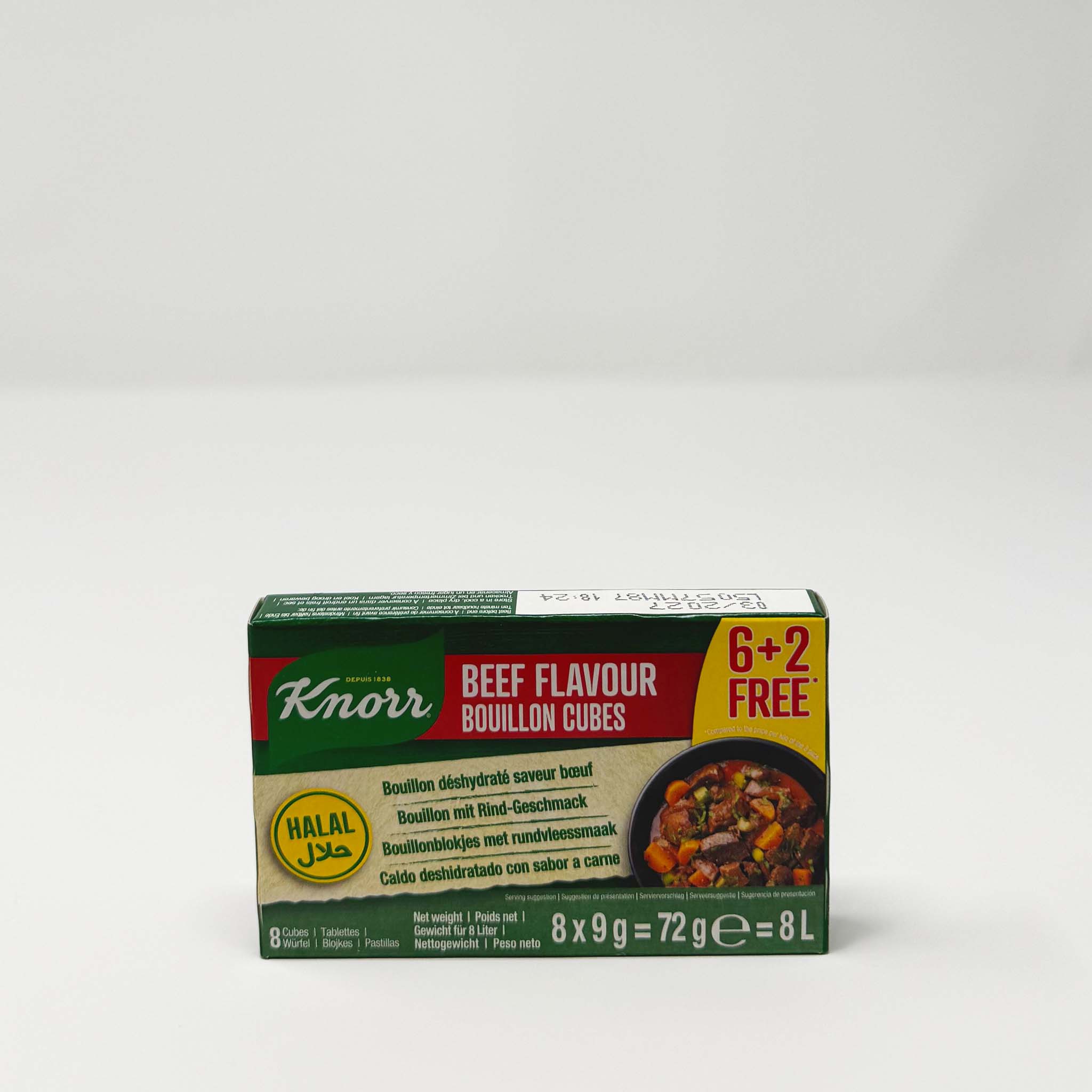 Knorr Beef Bouillon delivers rich, savory depth to soups, stews, and braised dishes with its concentrated beef flavor profile. This 72g package contains premium bouillon cubes formulated to enhance traditional recipes with authentic taste and umami richness. Dissolve in hot water or add directly to simmering broths for immediate flavor enhancement. A pantry staple for home cooks seeking restaurant-quality results with minimal preparation time.