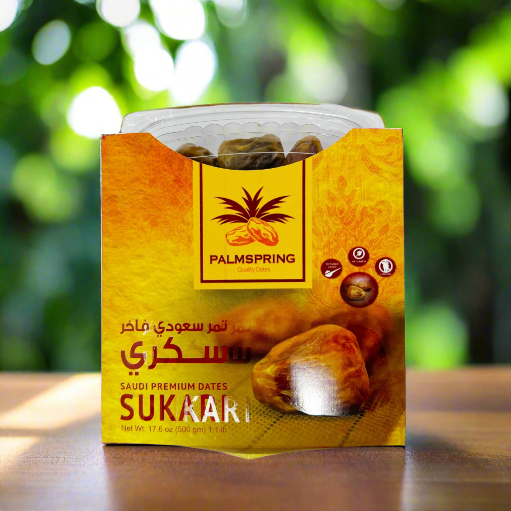 Experience the rich sweetness of Palmspring Sukari Dates in a convenient 500g pack. Grown in the sun-drenched palm groves of the Middle East, these dates boast a luxurious caramel-like flavor and tender texture. Perfect for snacking or adding to your favorite recipes, Palmspring Sukari Dates are a delicious indulgence you'll love. Treat yourself to the finest quality dates with Palmspring.